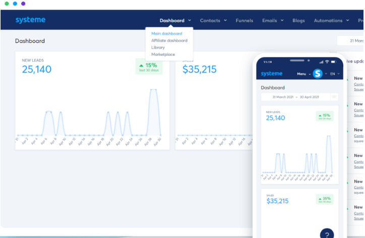 Systeme.io is an easy and affordable way to build stunning landing pages, manage email and social media lists, and capture more customers online. You have all the tools you need under the same roof.